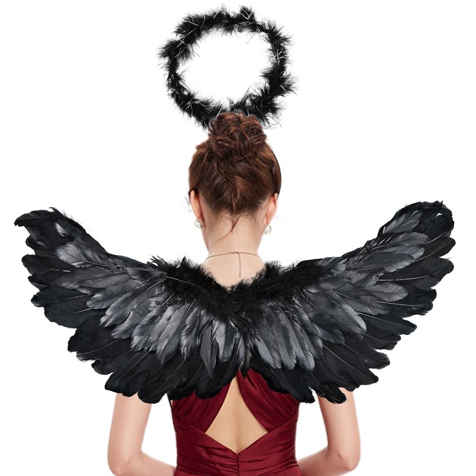 Ali in Stile 01 Leggere e Resistenti, Taglie S M L, Ali di Piume d'Angelo per Decorazione, Costume, Festa di Halloween, Cosplay
