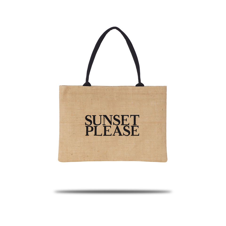 Borsa da spiaggia gialla elegante in poliestere ricamata con motivo in juta, tessuto resistente, stampa serigrafica, online 2025