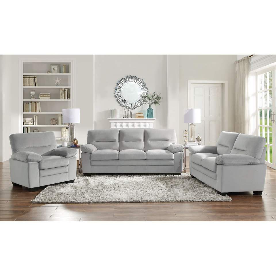 Stylish Comfortable 1pc Loveseat Gray Fabric Upholstery Solid Wood Plywood Framed Pillow-Top Arms Living Room Sofas Furniture
