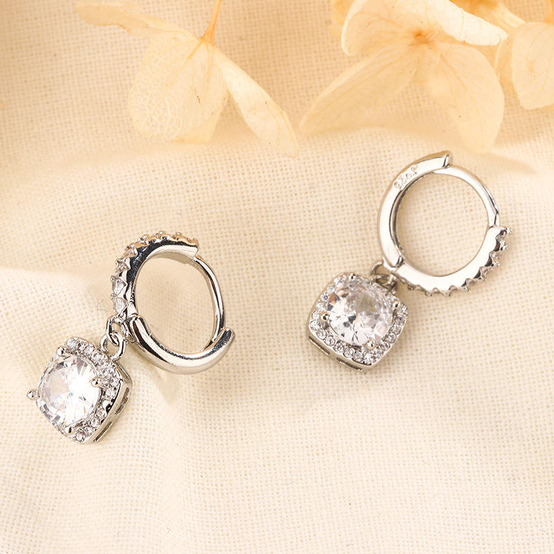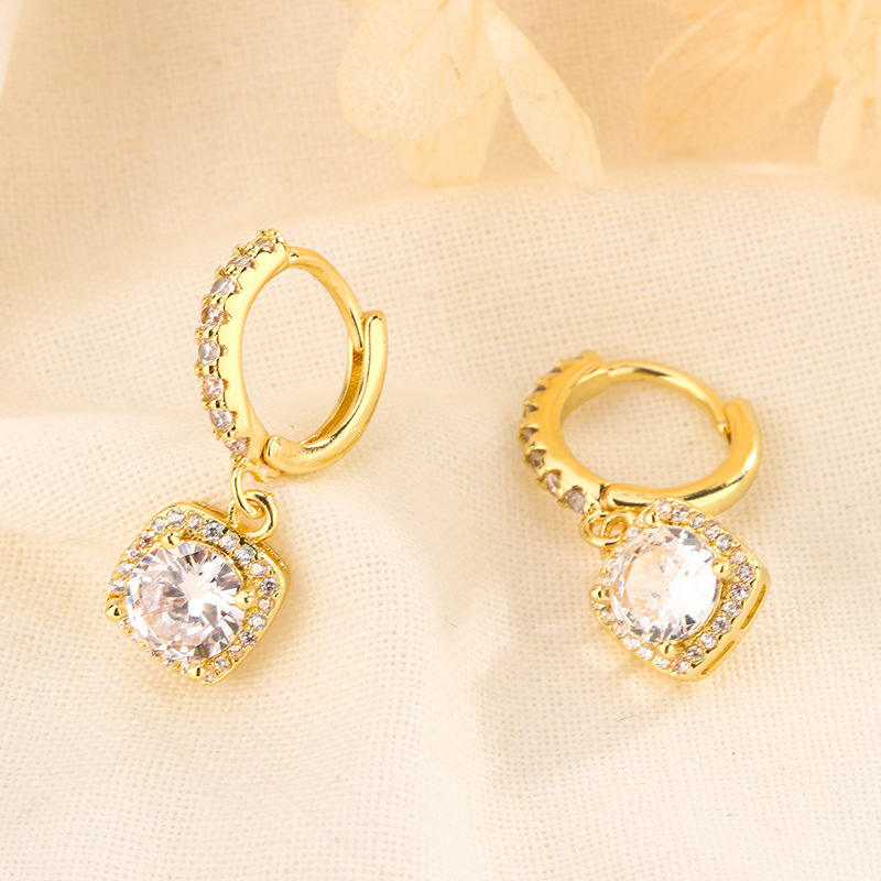 Orecchini eleganti donne Delicate Micro inserto zircone con pendente quadrato 100 fibbia personalità Senior Sense borchie
