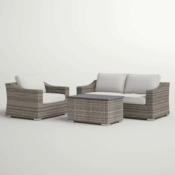 Elegante Set da giardino in vimini in vimini per 3 persone completamente assemblato con morbidi cuscini per il relax all'aperto