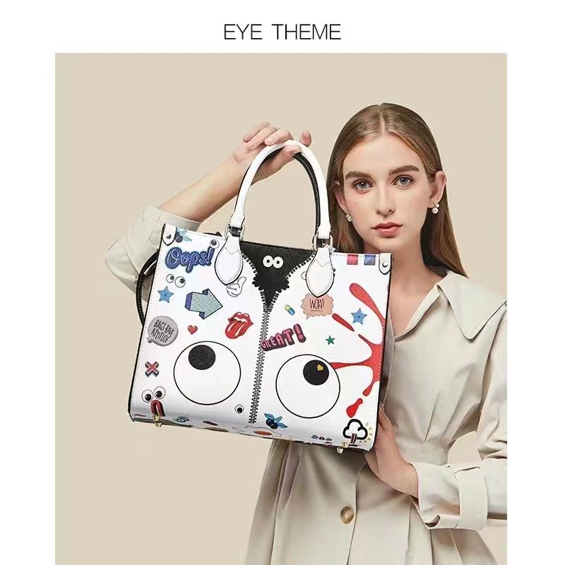 Stylish Girls College Trendy Combine White and Black Handbag Women Eye Theme Cute Bags