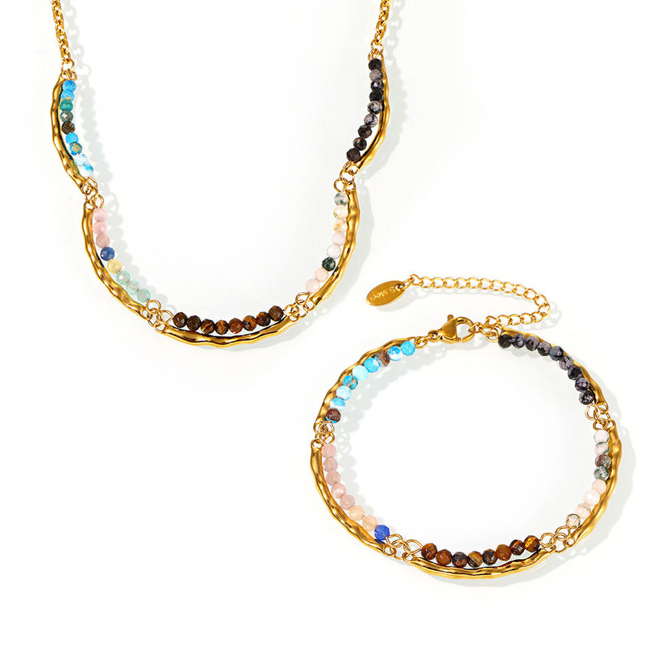 Elegante Set di Collana e Bracciale Fatto a Mano in Acciaio Inossidabile con Perle e Pietre Naturali per Uso Quotidiano Femminile