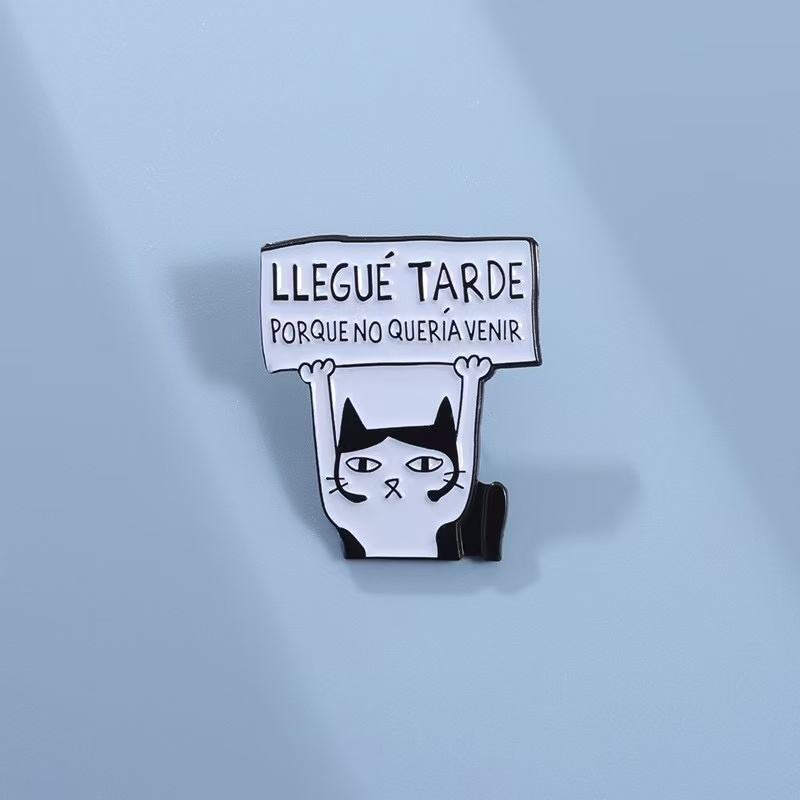 Alla moda sono in ritardo perché non volevo venire spagnolo lettera Cat spilla in metallo artigianato per migliorare gli accessori di abbigliamento