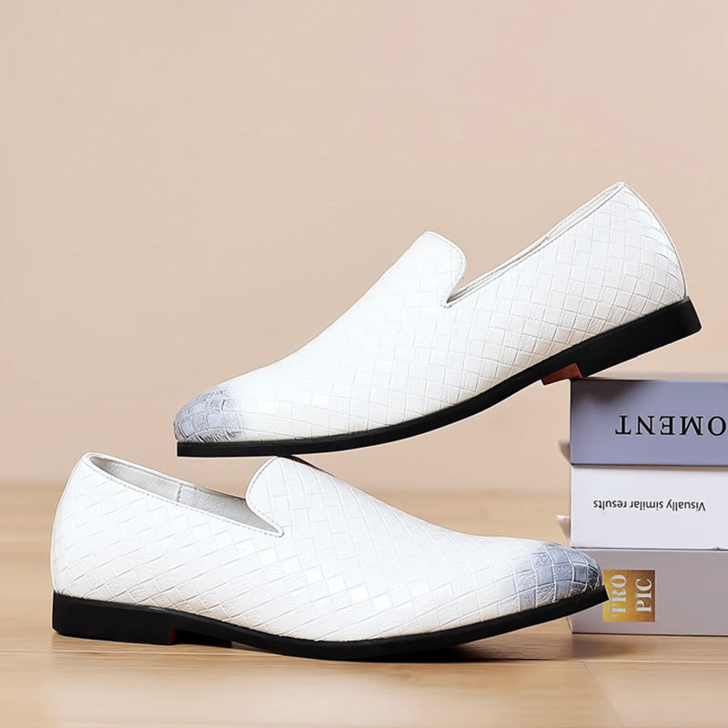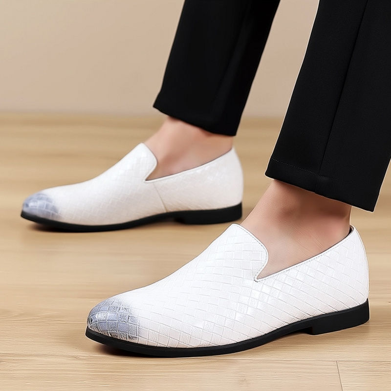 Stylish Male slip on Loafers Comfortable Walking Shoes Leather Casual Shoes Fashion White Leather Dress Shoes for Men