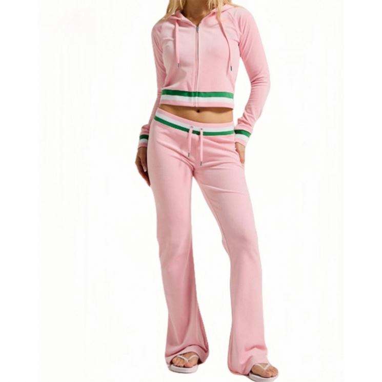 Stylish Pink Knit Set - Cropped Zip - up Hoodie High - Waist Flared Pants, Ribbed Knit Lounge Set Casual Wear
