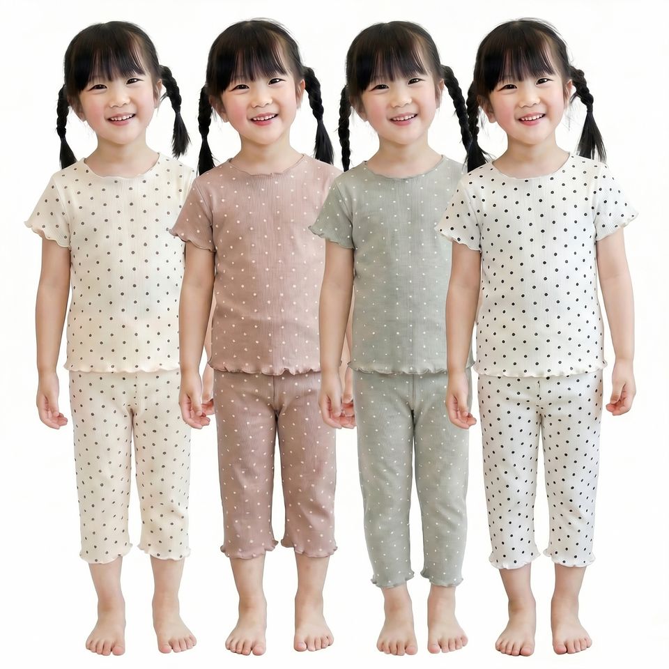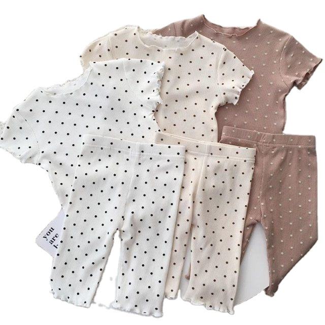 Elegante pigiama a due pezzi in seta di ghiaccio a pois per ragazze abbigliamento estivo Casual per la casa vestiti per bambini