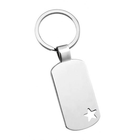 Elegante portachiavi in acciaio inossidabile con foro rettangolare a forma di stella con Logo personalizzato stampa Offset portachiavi regalo alla moda in ferro