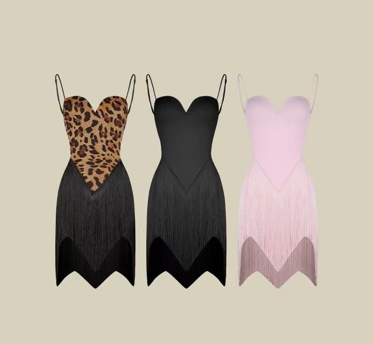 Stylish Summer Latin Dance Dress with Fringed Sexy Backless Design Leopard Print Skirt for Samba Cha Cha Swing Performances