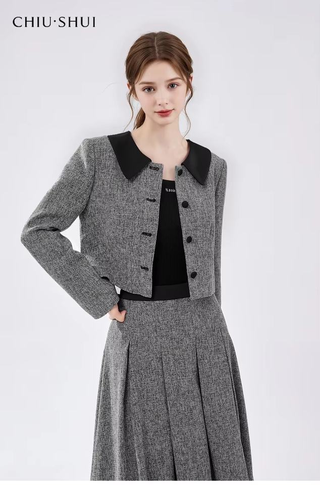 Elegante giacca da donna a due pezzi con colletto a contrasto elegante e gonna longuette a pieghe elegante abito da ufficio