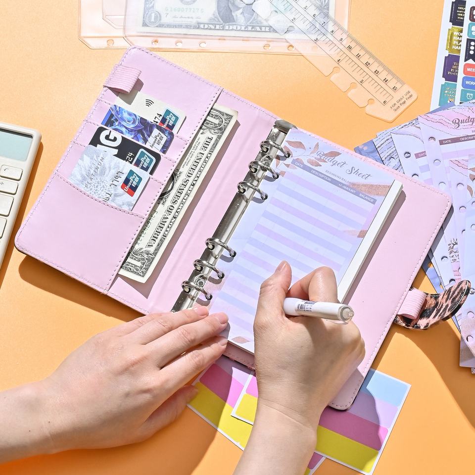 L'elegante raccoglitore con stampa leopardata rosa può essere personalizzato nel libro di bilancio per la gestione finanziaria del taccuino in contanti