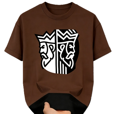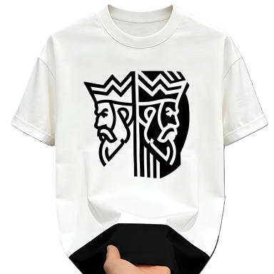 T-shirt con grafica di carte da poker con uomo barbuto reale e profilo testa stileizzato Split King