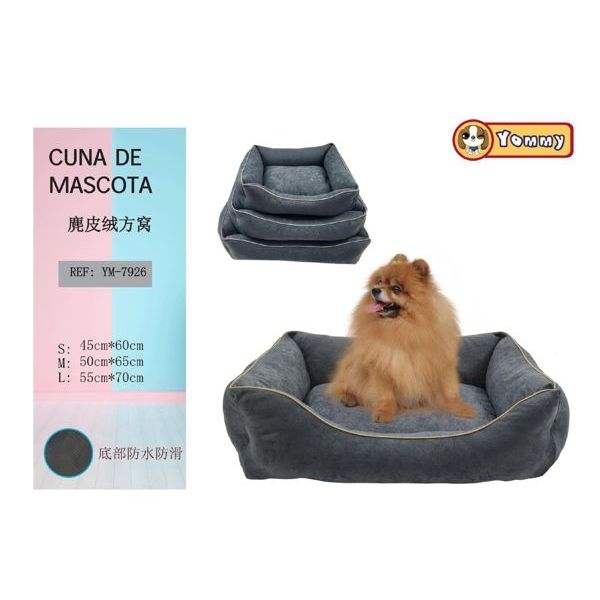 Suede Bag Border Sliding Bottom Square Nest Gray YM7926 Stylish Pet Bed