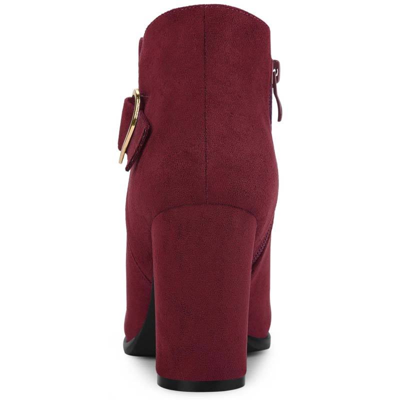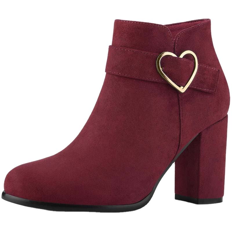 Suede Leather Custom Buckled Side Zip Fashion Women Chunky High Heel Ankle Boots Shoes:1Pair/Box,12,18,24Pairs/Carton,or As Your Requirements