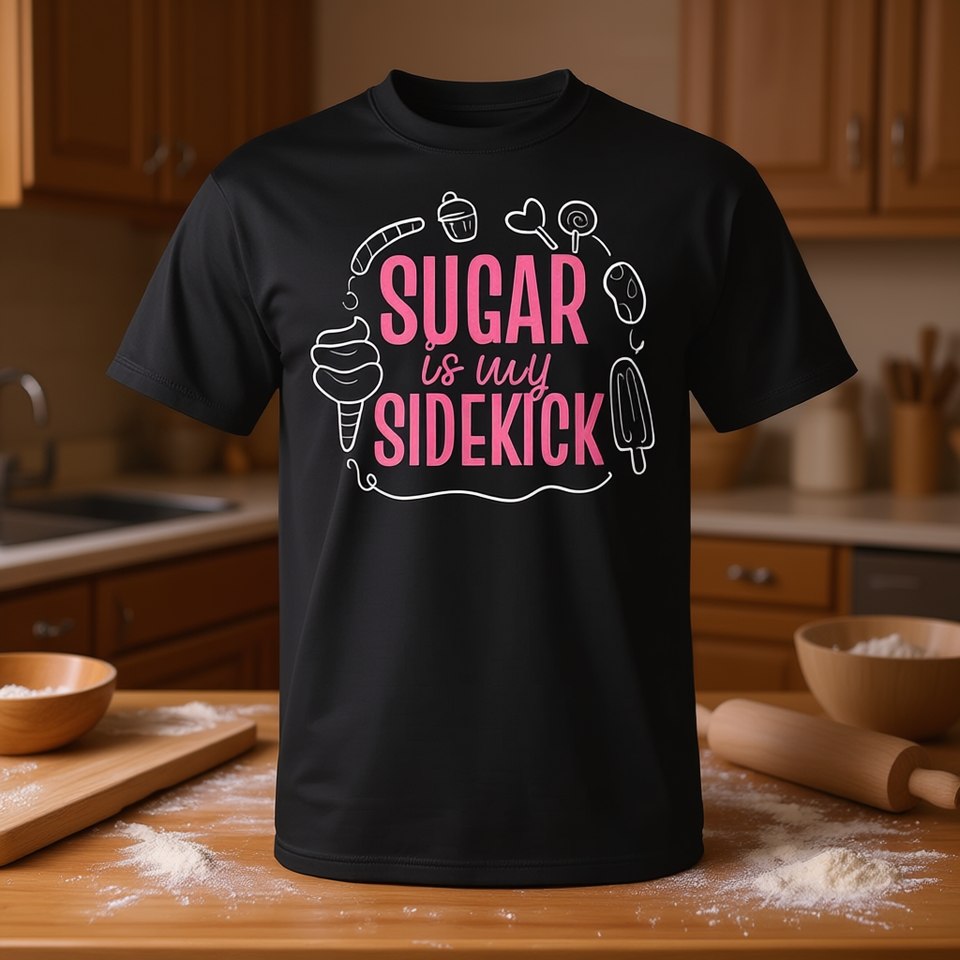 T-shirt Sugar Is My Sidekick per pasticceri e amanti del dolce