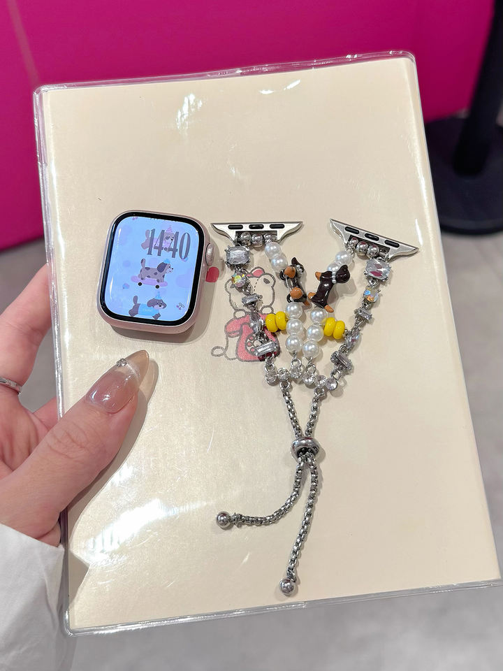 Adatto per la serie 10 9 8 7 6 5 4 3 2 cinturini per orologi, cinturino con perla bassotto carino e divertente, orologio Ultra 2/1 quadrante 38/49mm