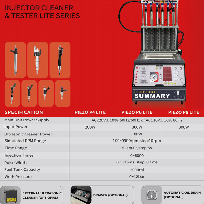 P8 Lite Pulitore Piezoelettrico per Iniettori di Moto GDI 8 Cilindri Macchina di Pulizia Ultrasonica per Iniettori di Carburante