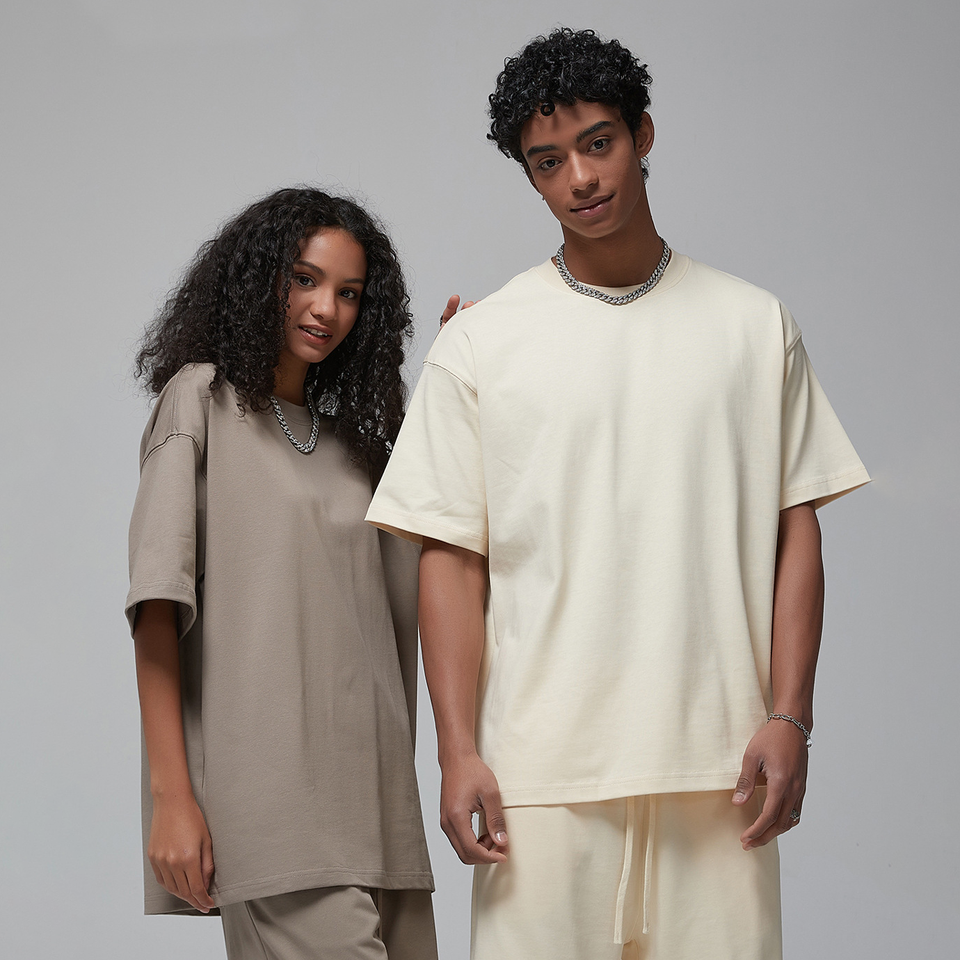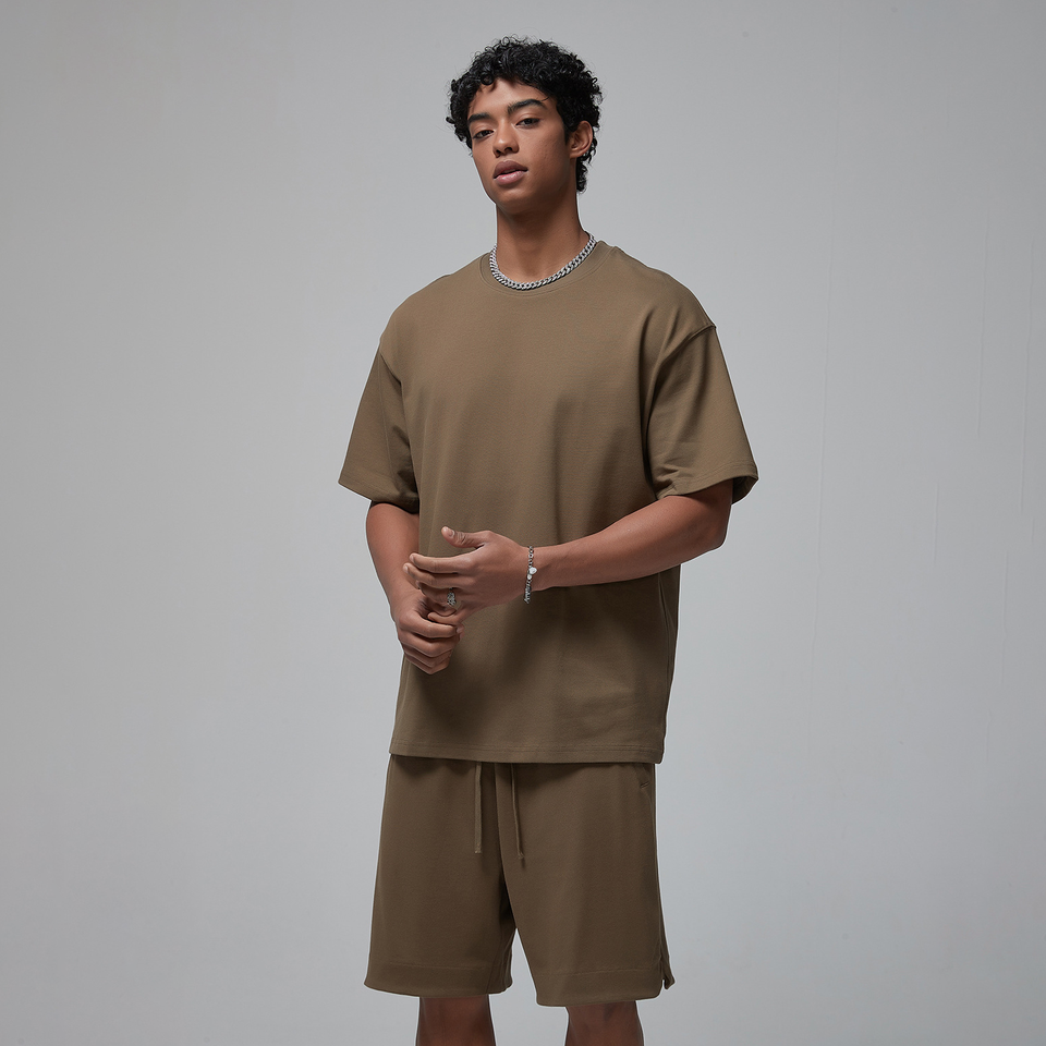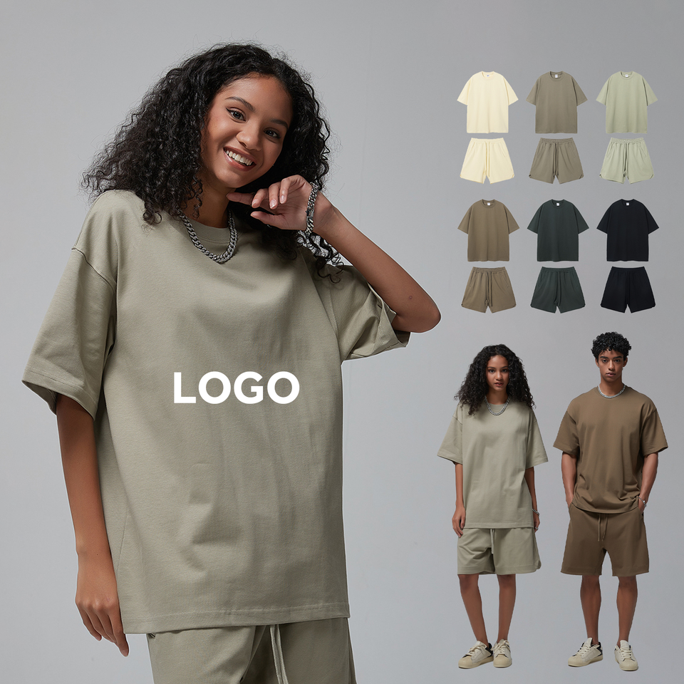 Summer 100% Cotton Heavyweight Casual Plain Man Oversized T-shirt and Short Set Streetwear Short Sleeve 2 Pieces T-shirt Sets