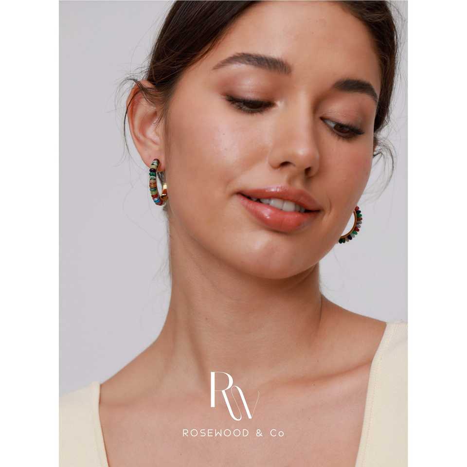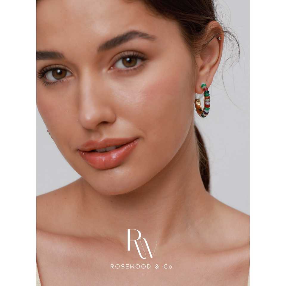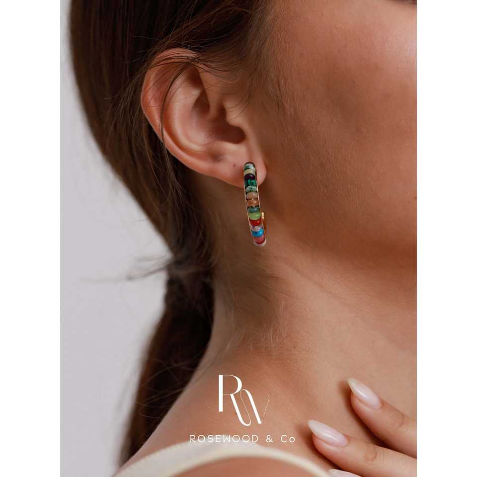 Orecchini a Cerchio Estivi da Spiaggia con Perline Arcobaleno, Avventurina, Onice Nero, Agata e Pietre Preziose in Stile Religioso