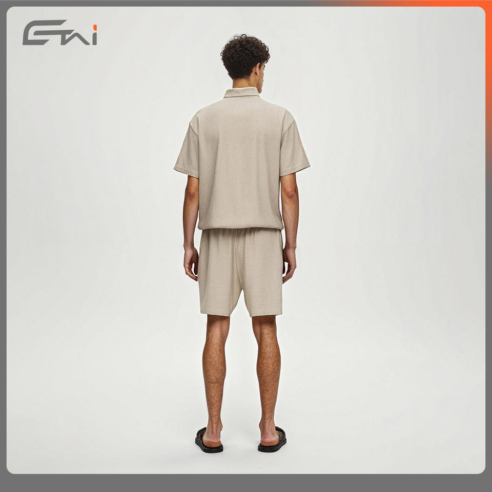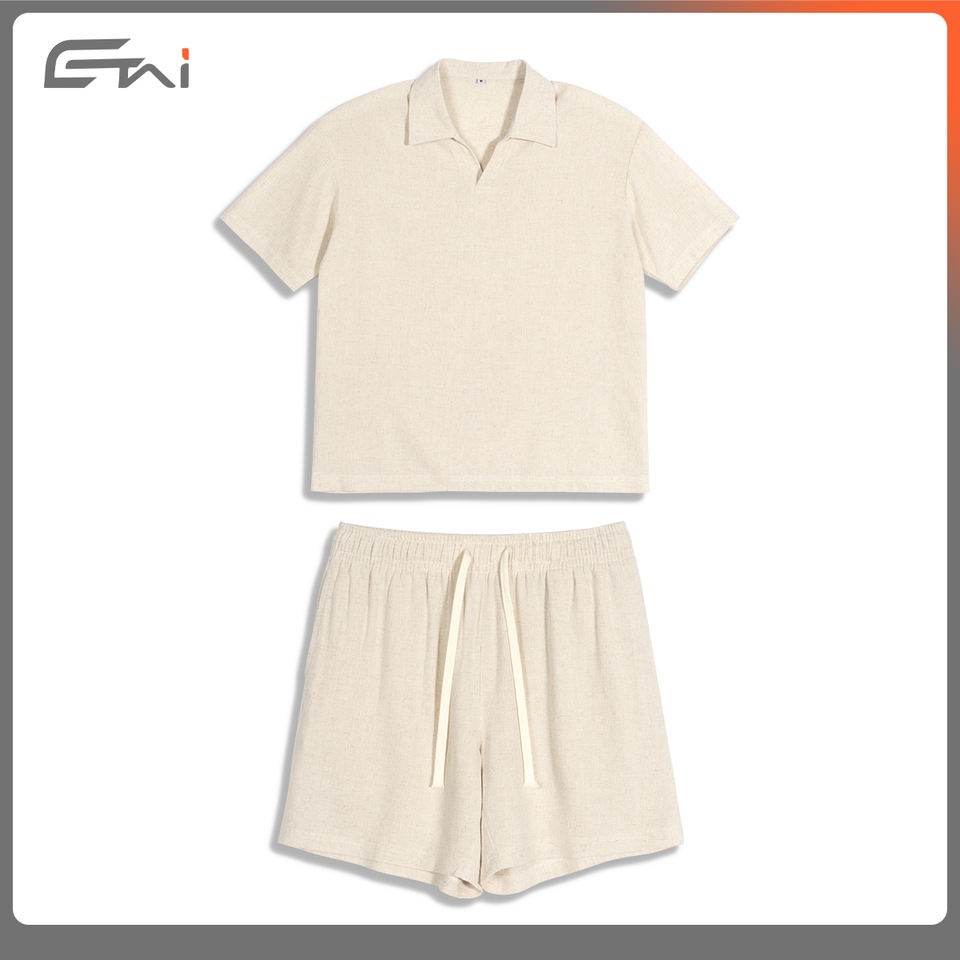 Completo estivo traspirante da uomo in cotone leggero lino da spiaggia Polo T shirt e Shorts Set