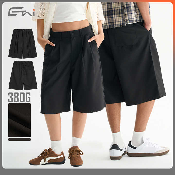 Chiusura estiva con bottoni al ginocchio abito corto Unisex ampio elastico in vita 3/4 a pieghe pantaloncini da uomo