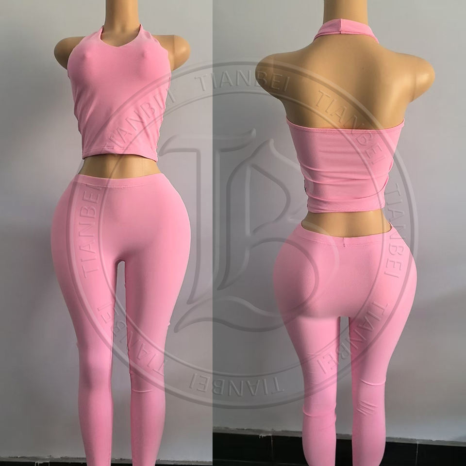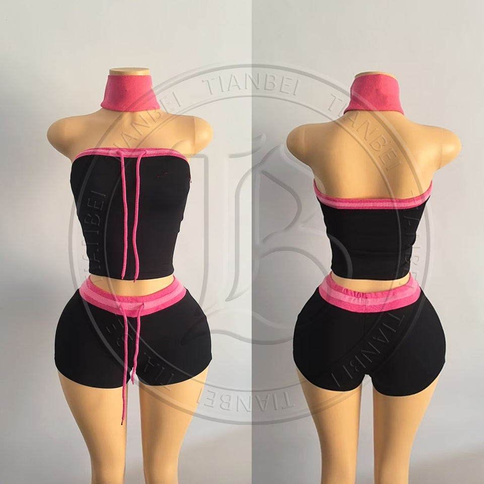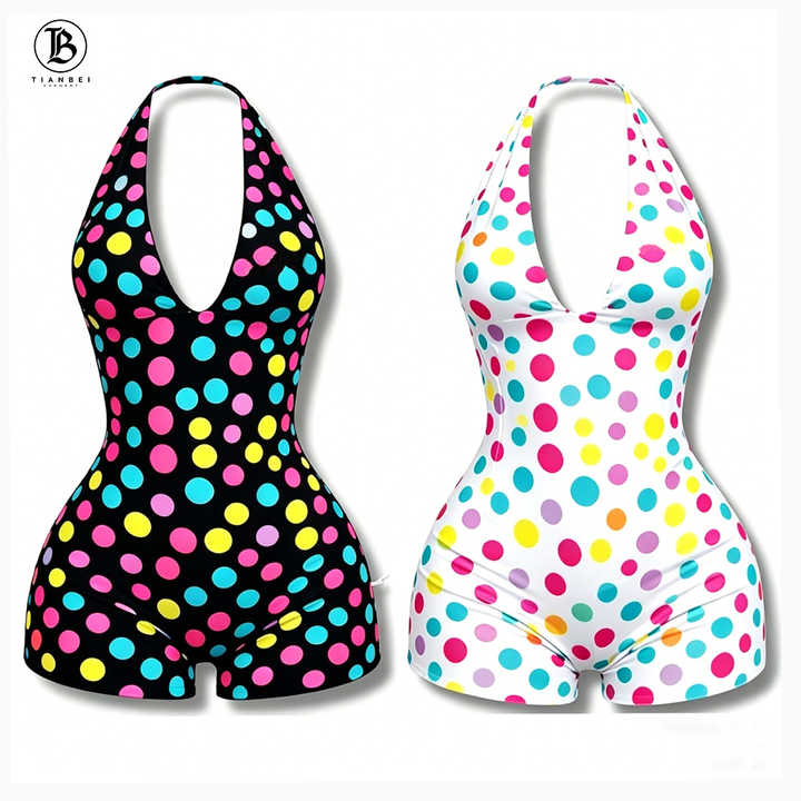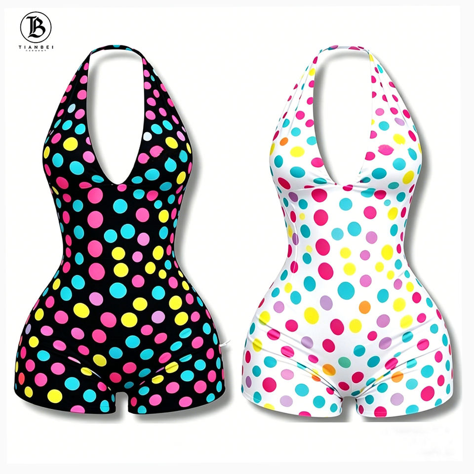 Blank Custom Logo Capri Sets for Women Halter Top Two Piece Polka Dot Summer Clothing