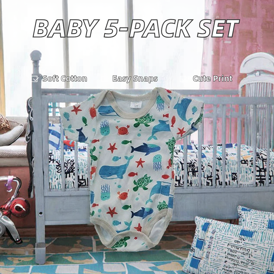 Summer Collection 5 Pack Newborn Bodysuits 0-3 Months 9 Months Easy Snap Closure Bulk Set Girl Boy Cotton for Onesies Cartoon