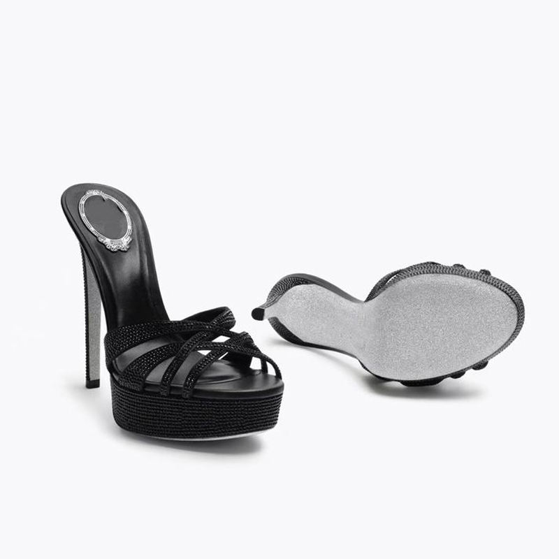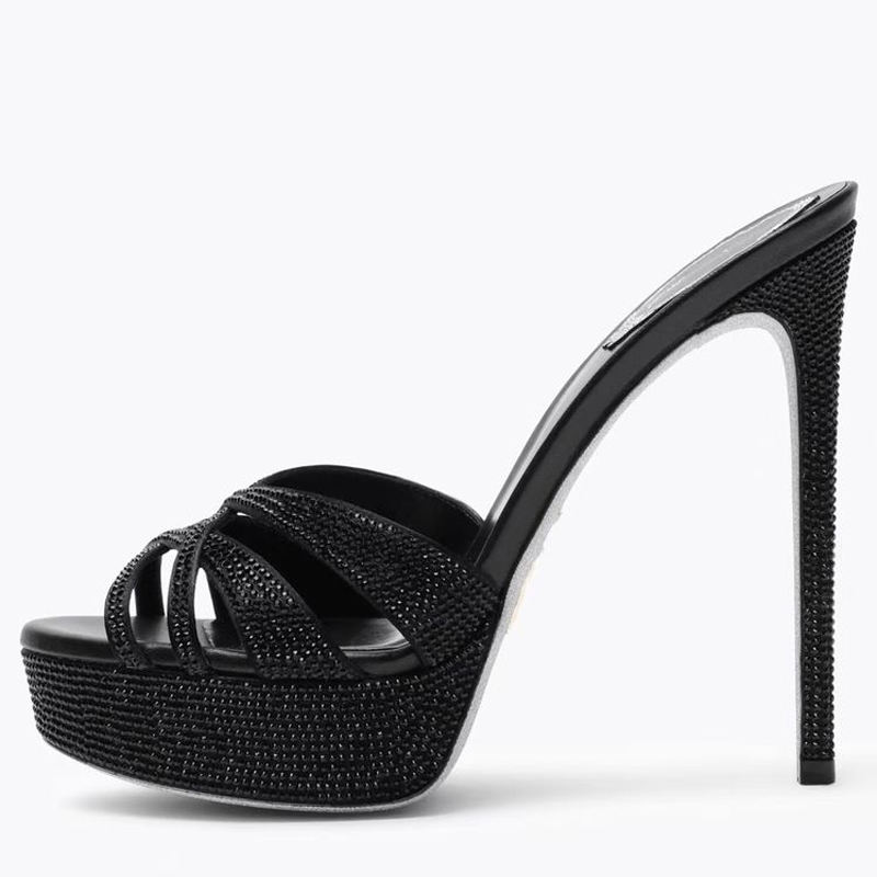 Estivi colorati piccoli diamanti décolleté sandali con plateau 44 a punta aperta tacchi alti sottili scarpe con cinturini incrociati da donna