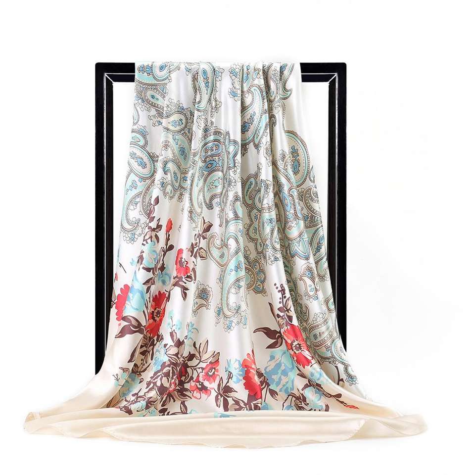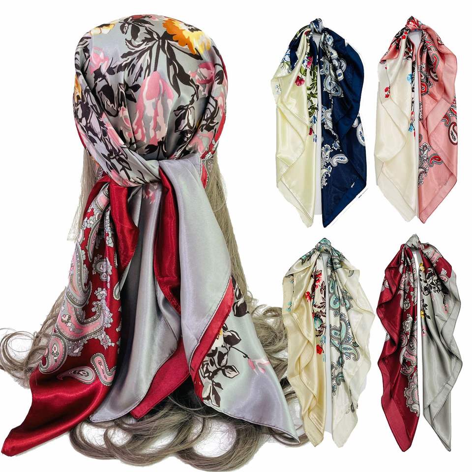 Di estate di Colori Del Fiore di Stampa Sciarpa di Seta per Le Donne di Grandi Dimensioni Raso Hijab Sciarpe Testa Fazzoletto 90x90 centimetri di Disegno di Marca scialli Stole