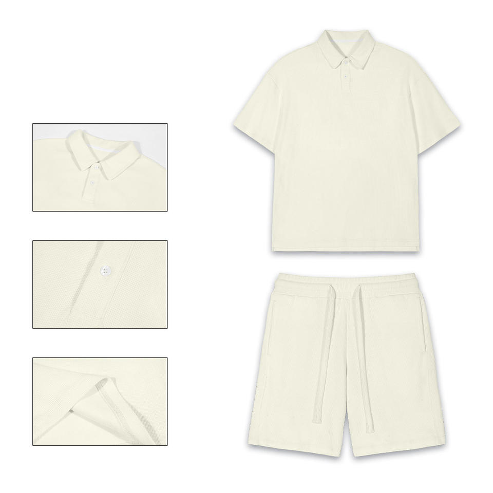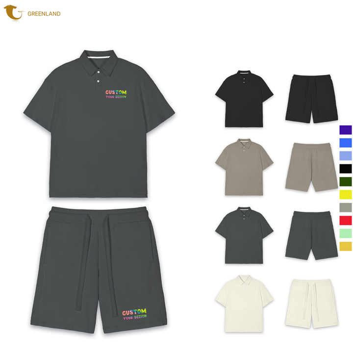 Summer Cotton Men's Polo Set With Custom Logo Graphic T Shirt and Shorts-Customizable Men's Clothing