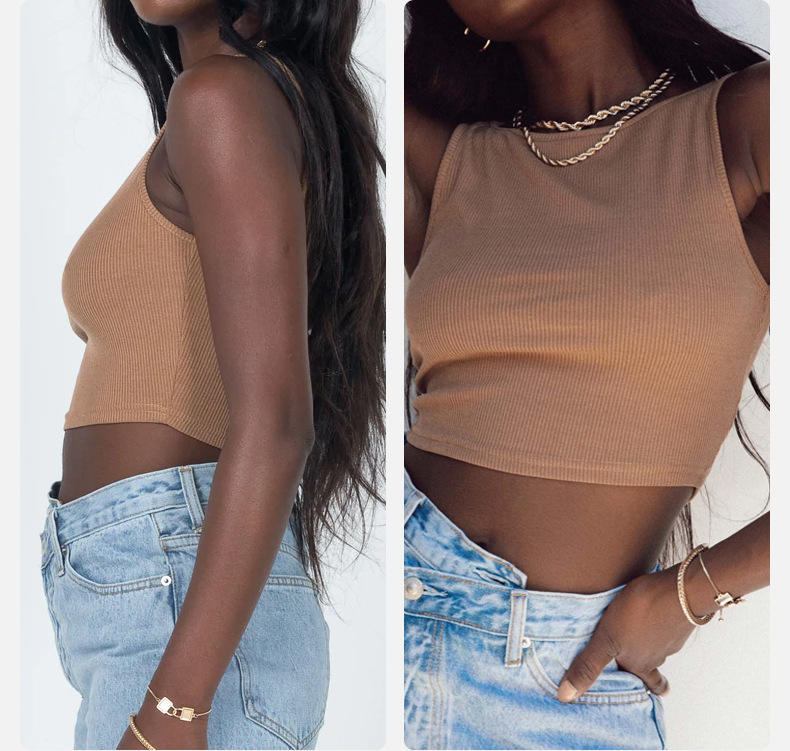Canotta Crop ricamata da donna Slim tinta unita a costine moda personalizzata estiva