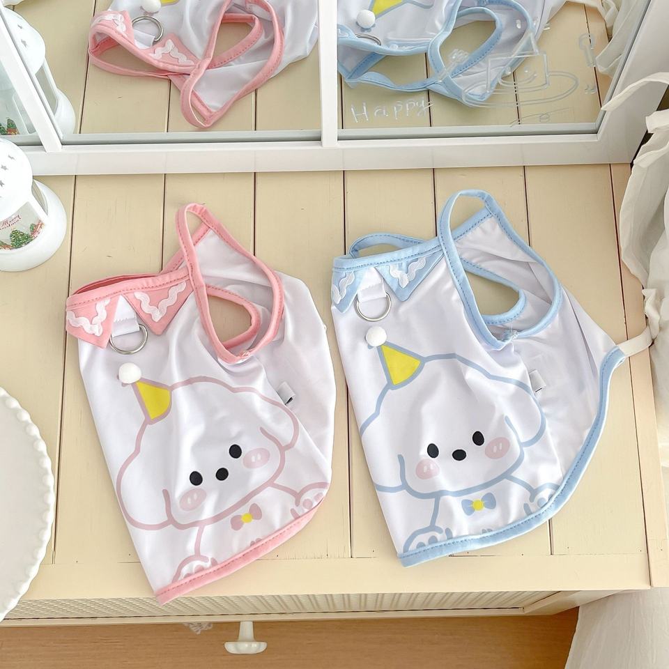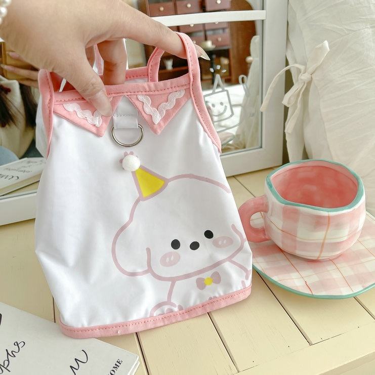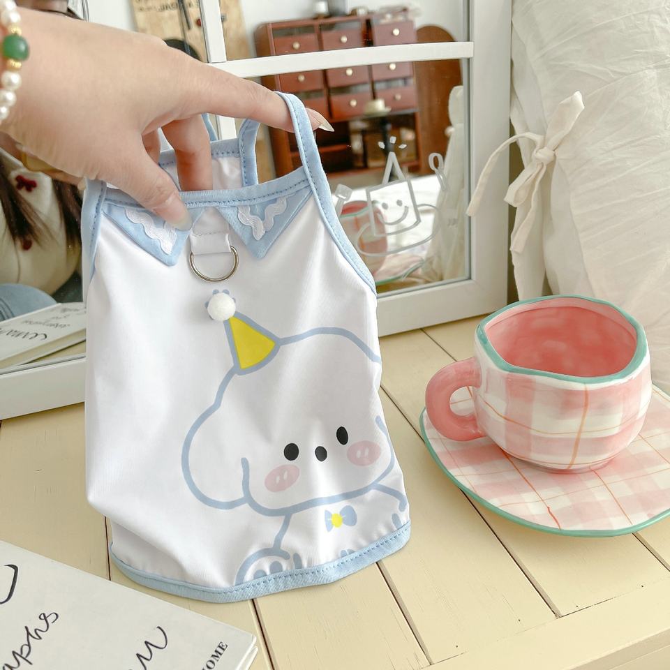 Gilet Estivo per Animali Domestici con Motivo Cucciolo Cartone Animato, Sottile, Traspirante, con Anello a D, per Cani e Gatti
