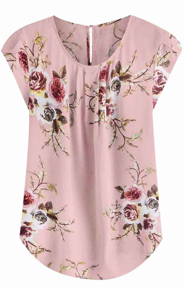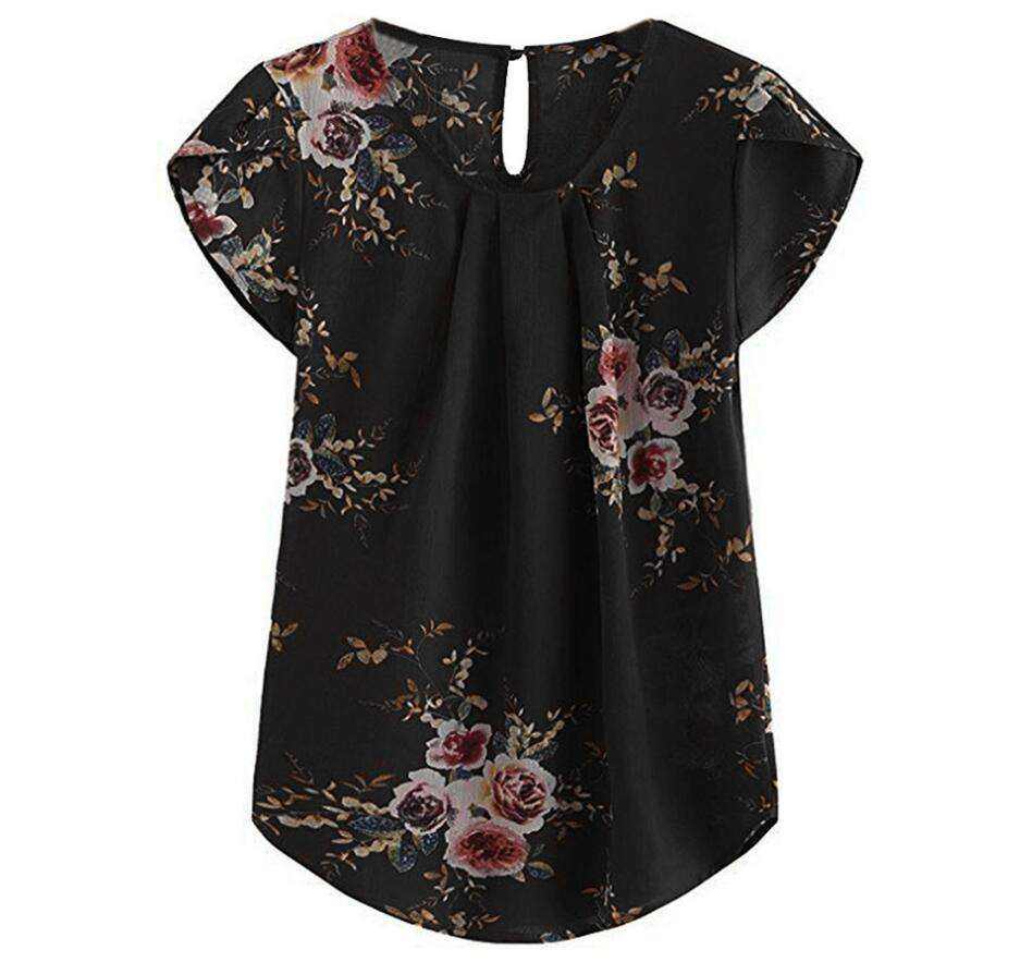 Camicetta estiva a stampa floreale, pullover con scollo rotondo, maglietta retrò da donna, camicia a maniche corte, abbigliamento femminile