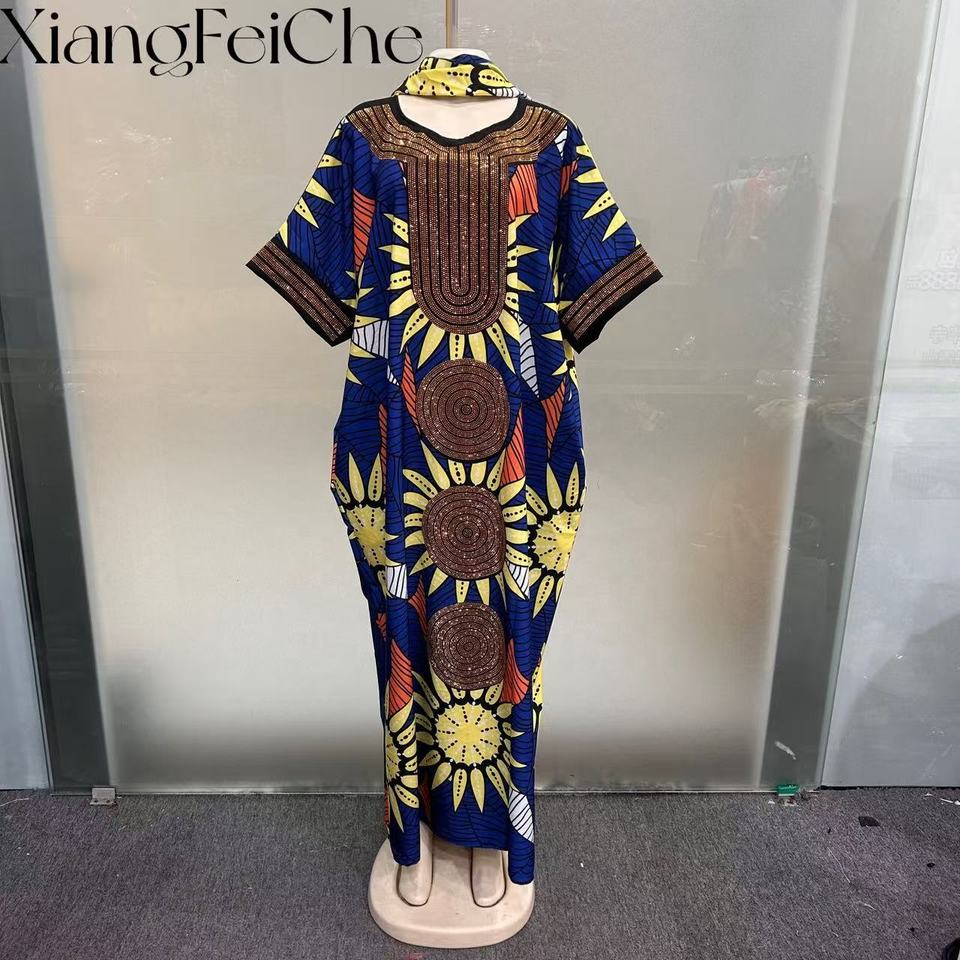 Abito Lungo Estivo alla Moda con Strass, Stile Etnico Musulmano, Taglie Forti, Nuovo Vestito da Festa per Donna