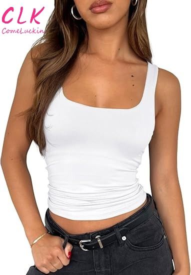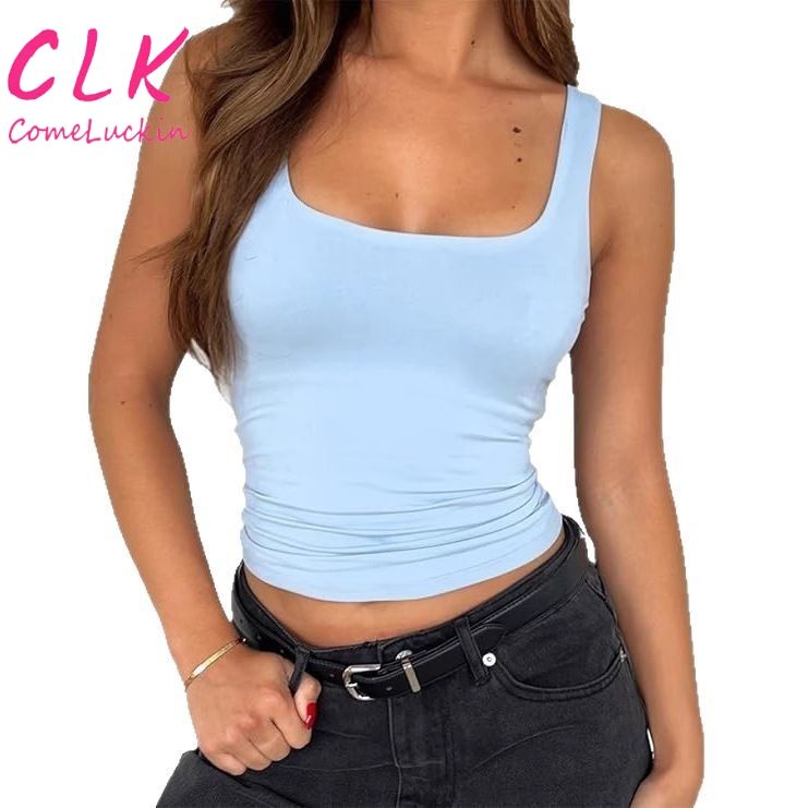 Summer High Quality Custom logo Knitted White Crop tank Top Graphic Wide Shoulder Strap Rib Women Crop Top