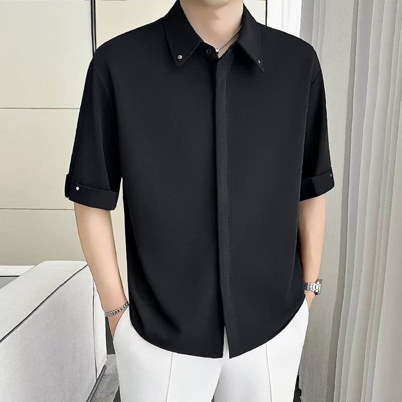 Camicia Estiva di Alta Qualità per Uomo, Senza Bisogno di Stiratura, in Seta Ghiacciata Sottile, Manica Corta, Modello a Cinque Mezze Maniche