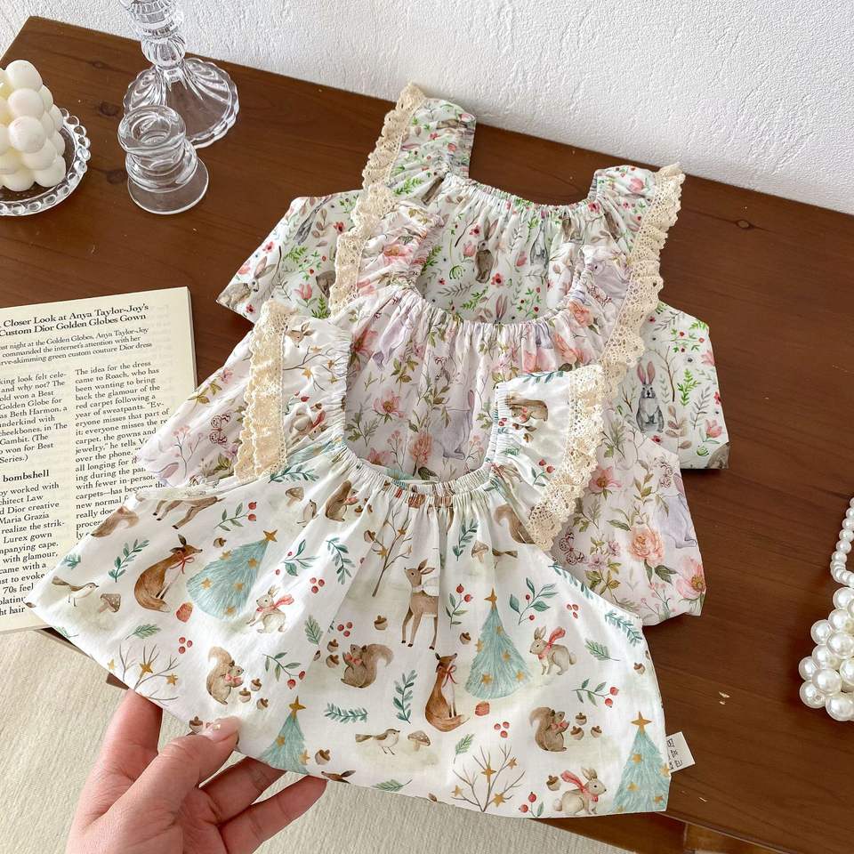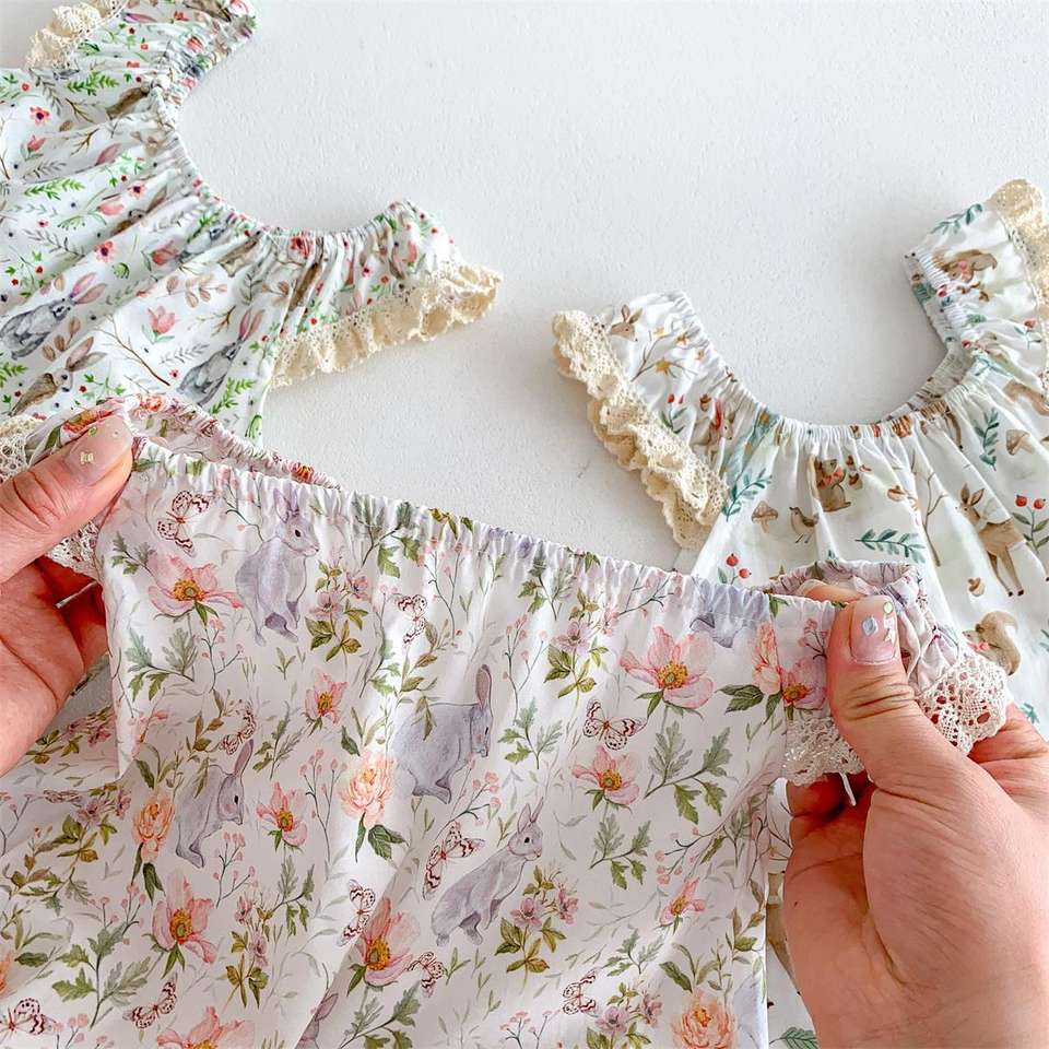 Summer Ins Hottest Boutique Cute Infant Baby Jumpsuit Online Store High Quality Newborn Girl Strap Flower Sweet Retro Rompers