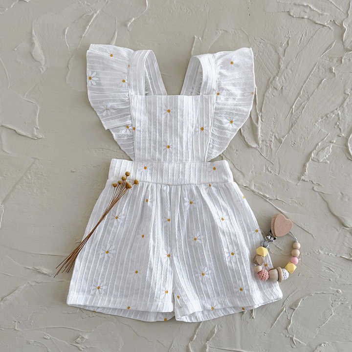 Pagliaccetto estivo lavorato a maglia per bambine e bambine pantaloncini con bretelle a collo quadrato senza maniche con stampa floreale tute comode da bambino