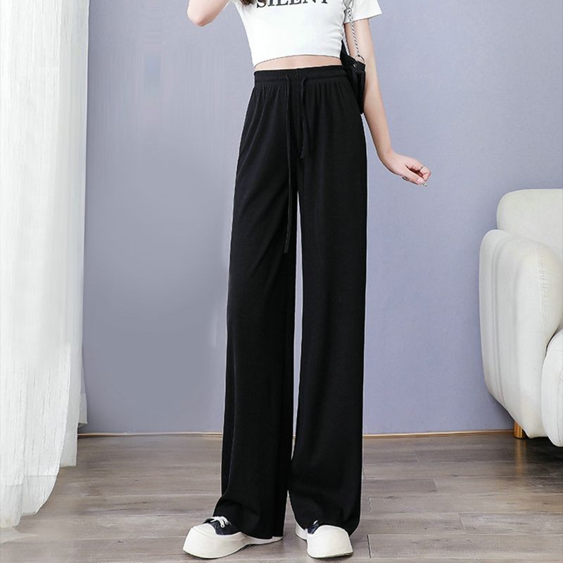 Pantaloni Estivi da Donna in Seta Ghiaccio a Gamba Larga, Tinta Unita, Vita Alta, Comodi e Casual