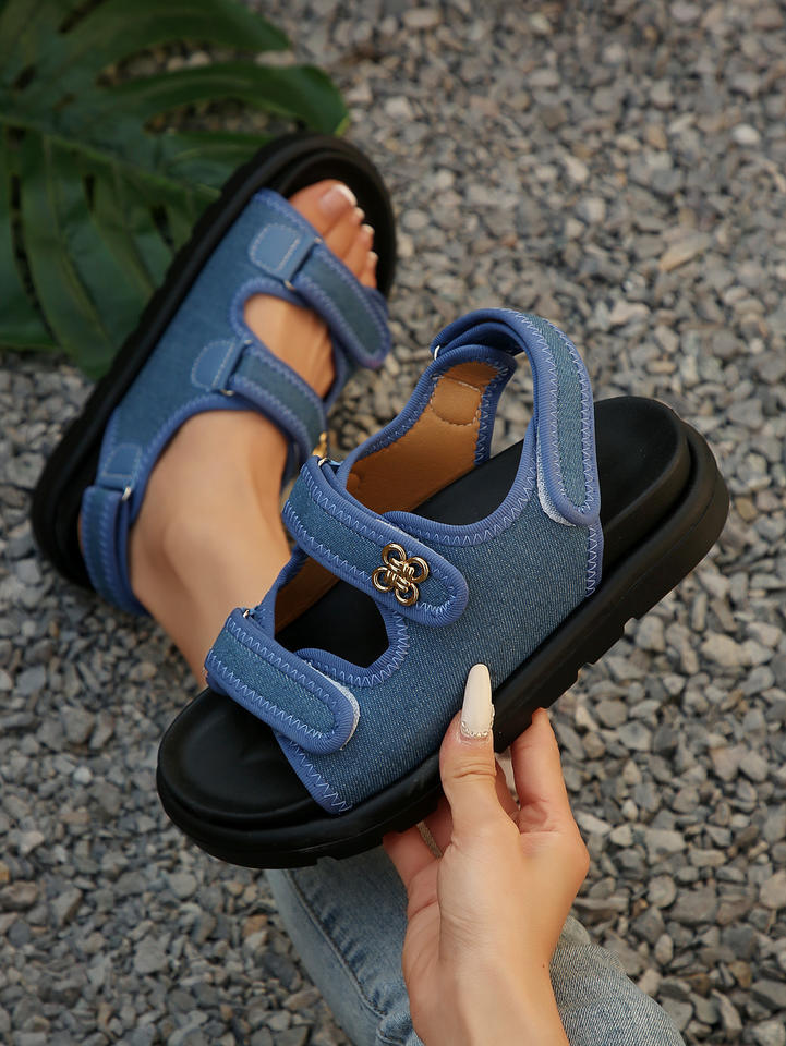 Summer Large Denim Sticked Thick Bottom Slip-on Platform Sandals 2026 New European and American Texture Roman Women's Slippers