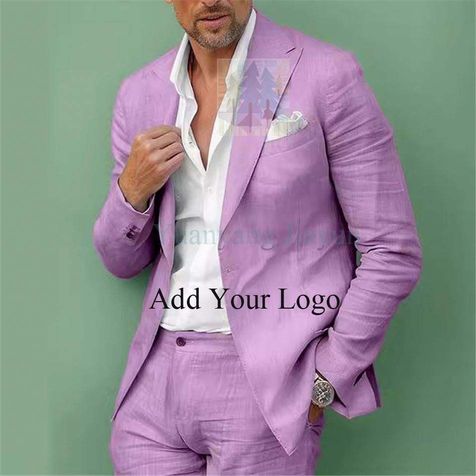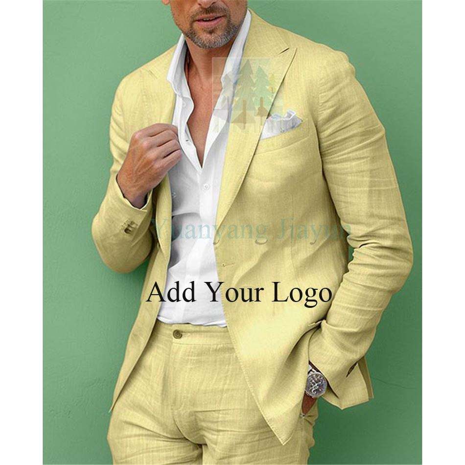 Abiti da uomo in lino estivo, vestibilità regolare, 3 pezzi, smoking da sposa, pantaloni di gilet con risvolto formale
