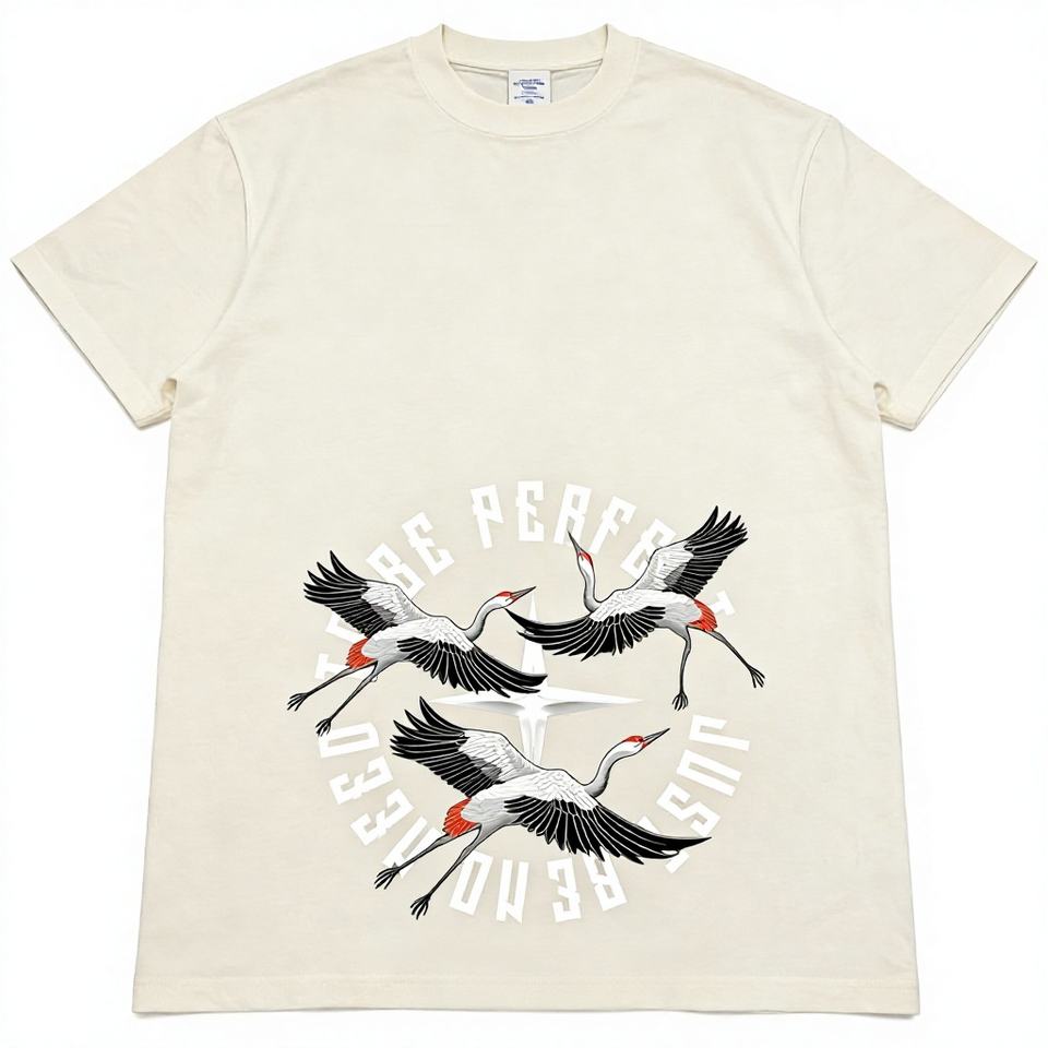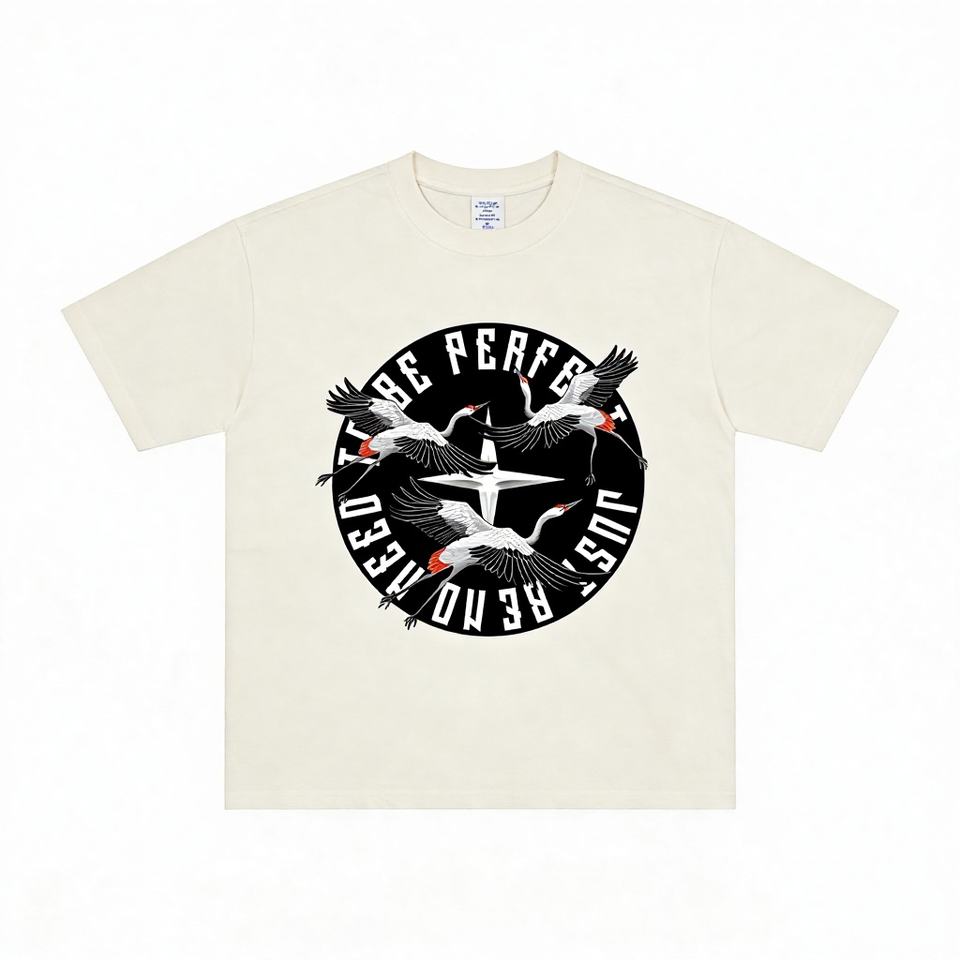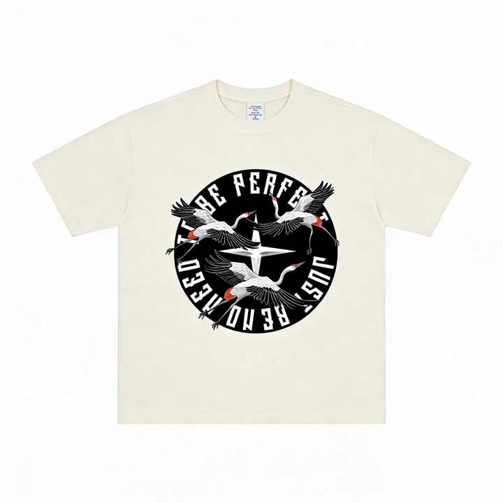 T-shirt estiva da uomo versatile, pesante, alla moda, a maniche corte, con grafica gru e scritta "Hold on to Your Dreams", casual, ampia e di stile