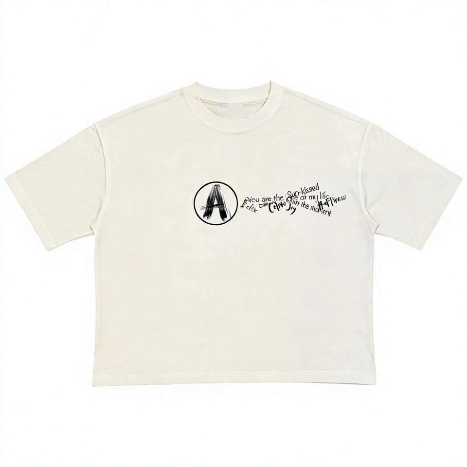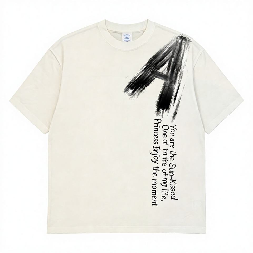 Summer Man's Heavy Weight Fashion Short-sleeved "Sunkissed Joy" Brush Letter a Graphic Printed Casual Comfortable T-Shirt
