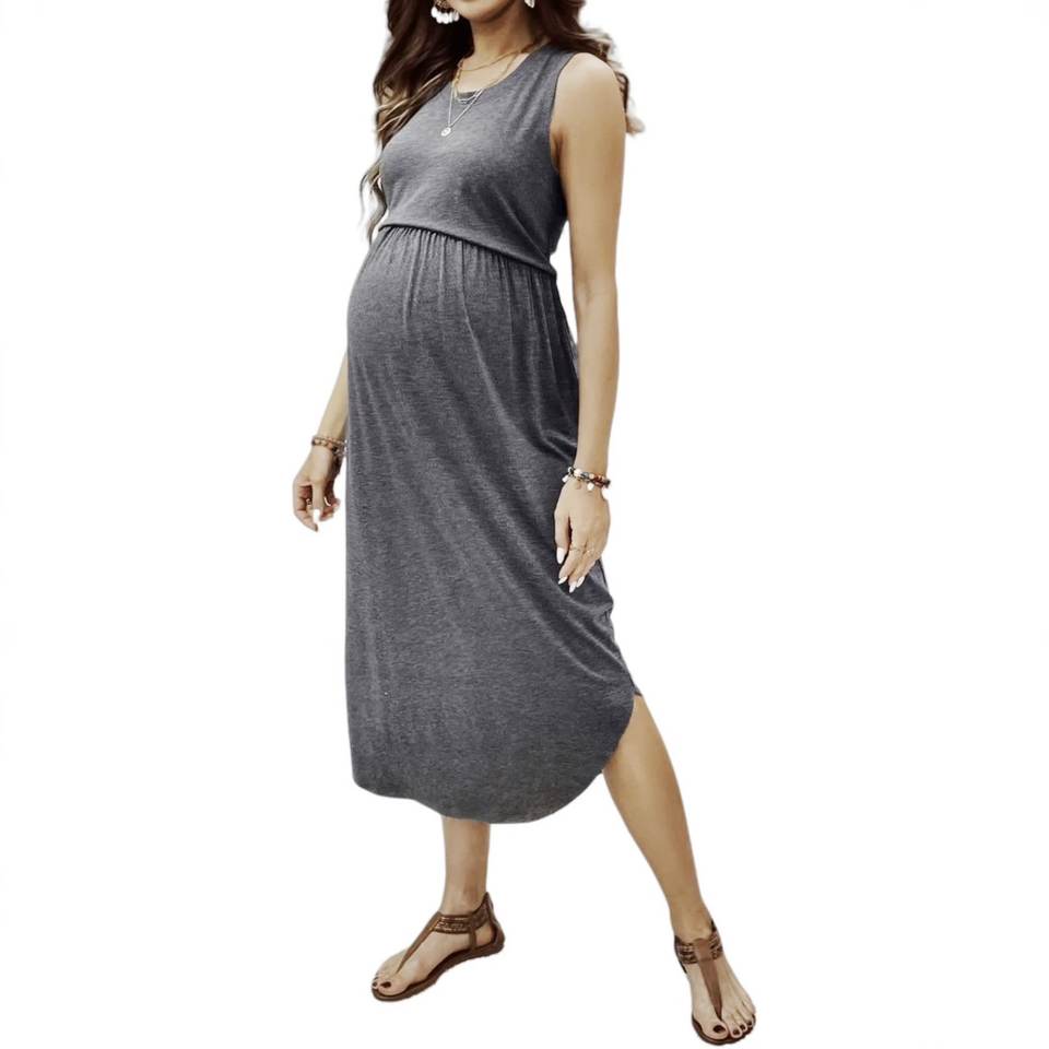 Summer Maternity Long Dress Sleeveless Breastfeeding Pregnant Lactation Clothes Stretch Loose Casual Knee-Length Dresses