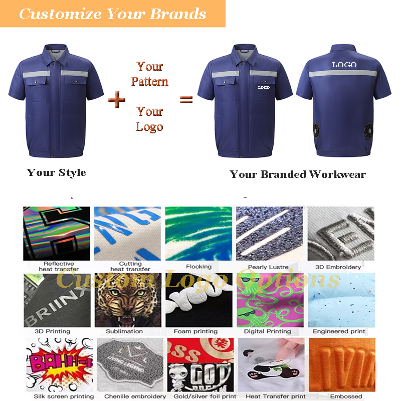 Estate aria condizionata potenti ventole camicia di raffreddamento manica corta con abbigliamento da lavoro ricaricabile con strisce riflettenti