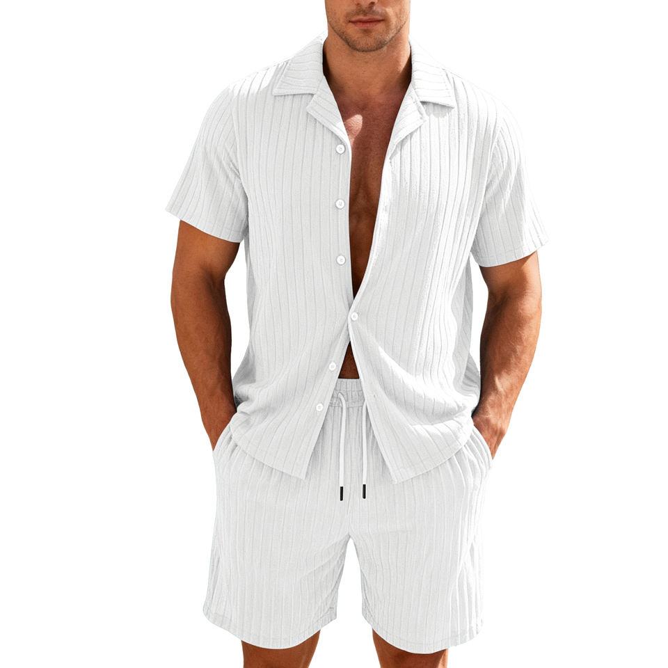 Summer Men's Casual Cardigan Short-Sleeved Shorts Suit Solid Color Short Sleeve with Shorts Beach Suit Beachwear