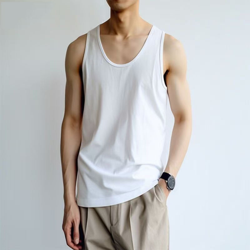 Gilet estivo personalizzato da uomo con logo bianco tinta unita traspirante senza maniche e senza collo camicia sportiva canotta da uomo