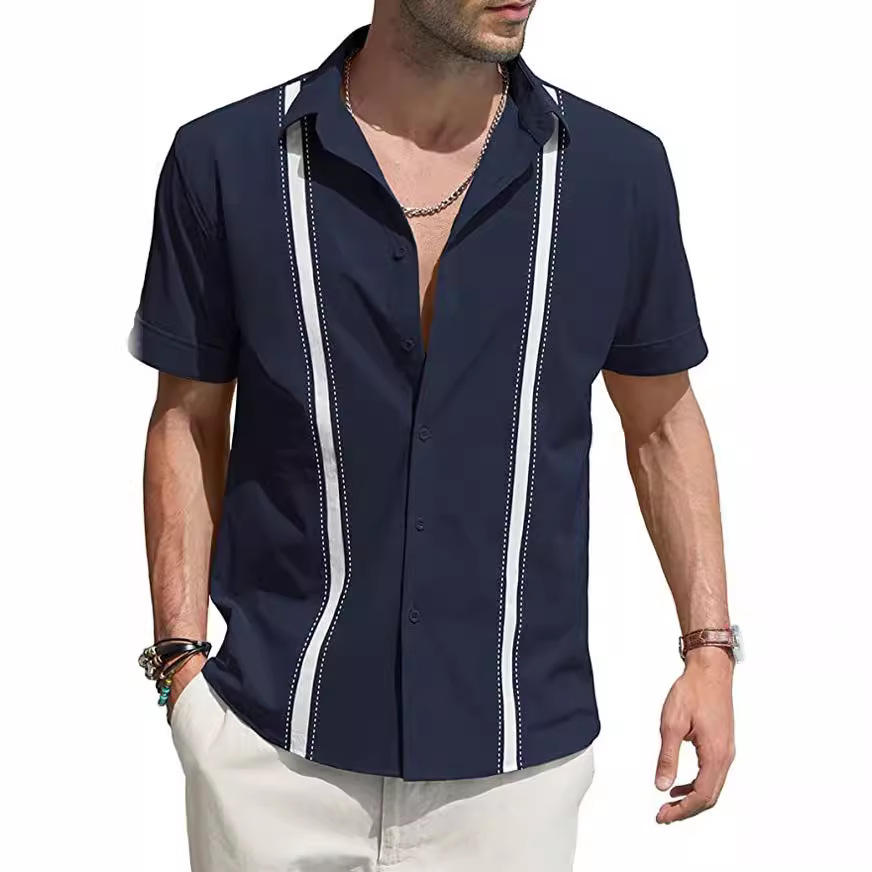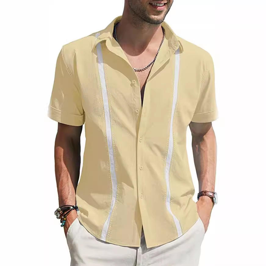 Camicia di lino da uomo estiva con Design cubano Shagua Abella a manica corta Casual stile bavero per la primavera