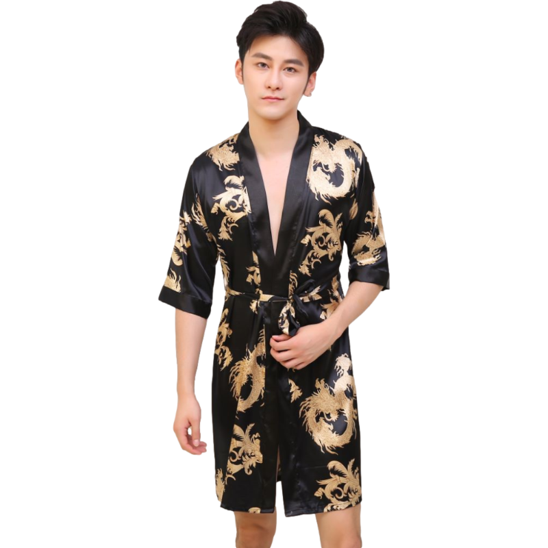 Abbigliamento estivo da uomo in raso e raso pigiama abbigliamento da notte drago di lusso abito da sera a manica lunga abito da sera Kimono da uomo accappatoio