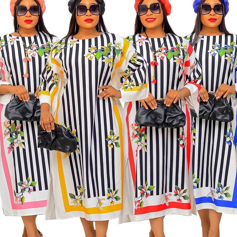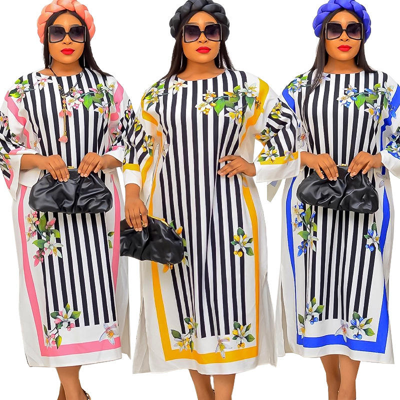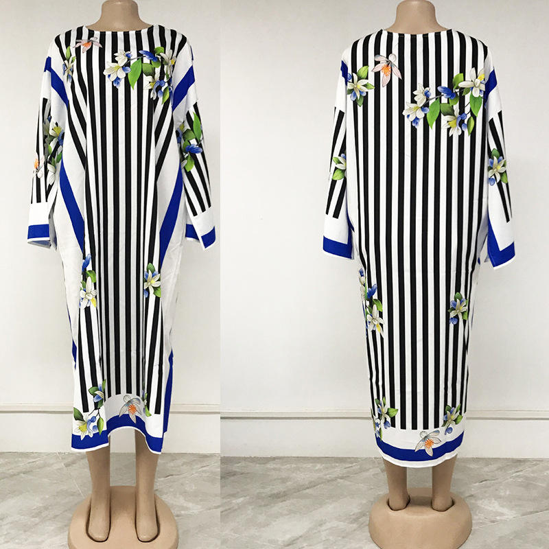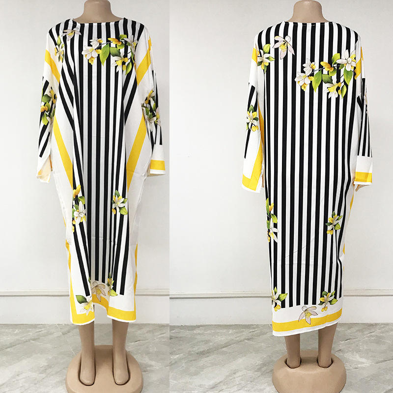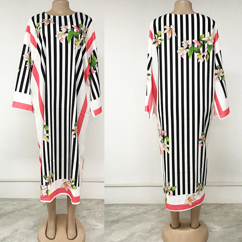 Vestito estivo musulmano Plus Size abito largo con stampa a righe Color abito lungo con maniche a pipistrello abito da donna a maniche lunghe